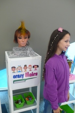 Der absolute Hit ist unser "Crazy-Hairs"-Stand mit frech-verrückten Hairstyling-Ideen für Jungs und Mädchen!