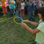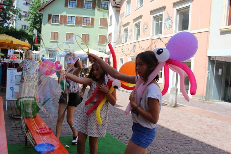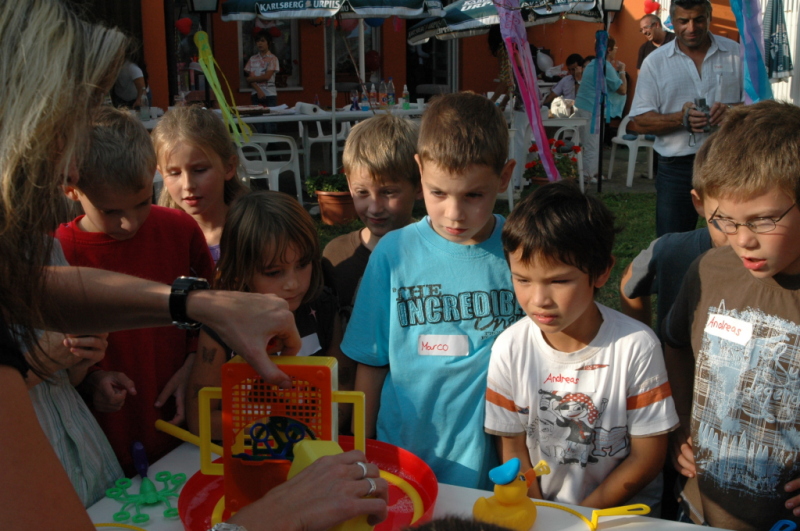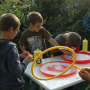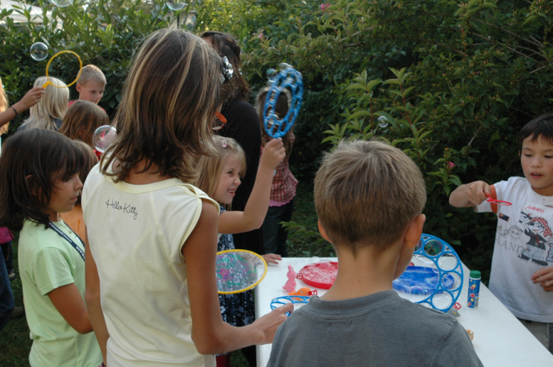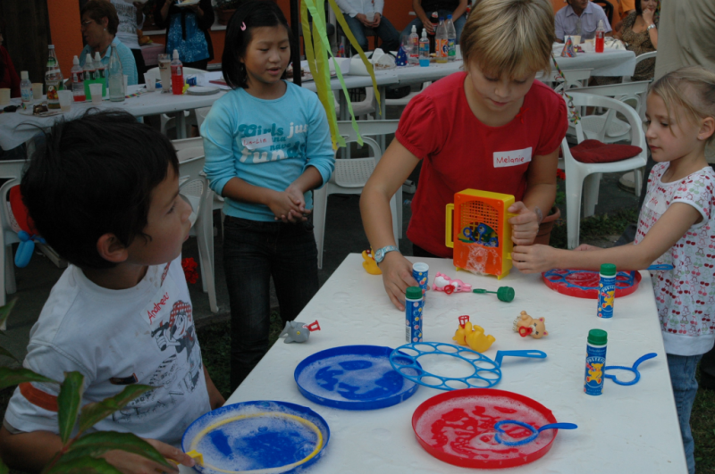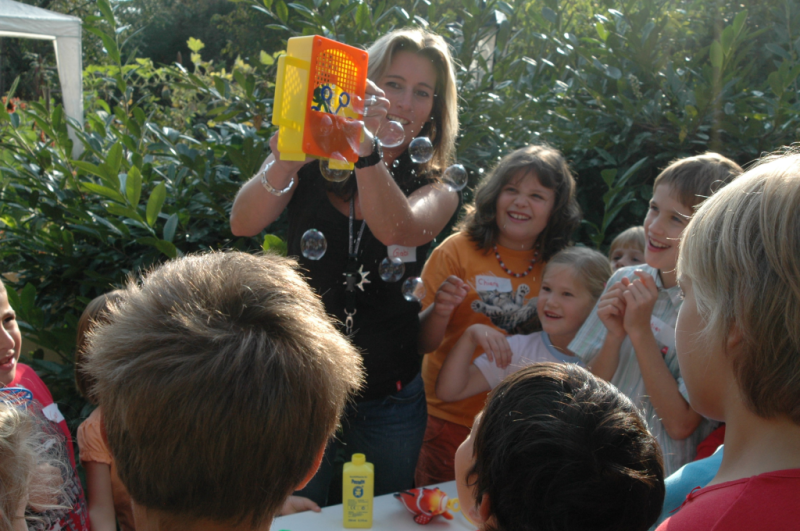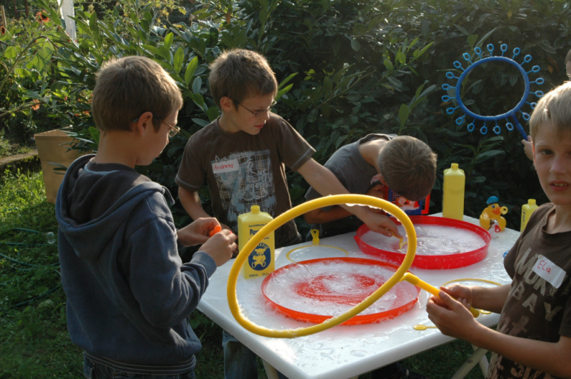 Mit riesigen Ringen, Spieltieren und Seifenblasenmittel können die Kinder selbst versuchen, die größten Seifenblasen zu pusten und zu gestalten.