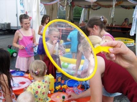 Zu jeder Veranstaltung und Kindergeburtstag können wir Ihnen zusätzlich einen riesigen Spaß mit den beliebten "Riesenseifenblasen" anbieten.