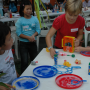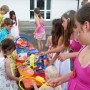 Tisch aufstellen. Pustefix-Flüssigkeit in die Schalen einfüllen. Spielutensilien bereitlegen. Und schon kann der große Seifenblasen-Spaß zum Mitspielen losgehen.