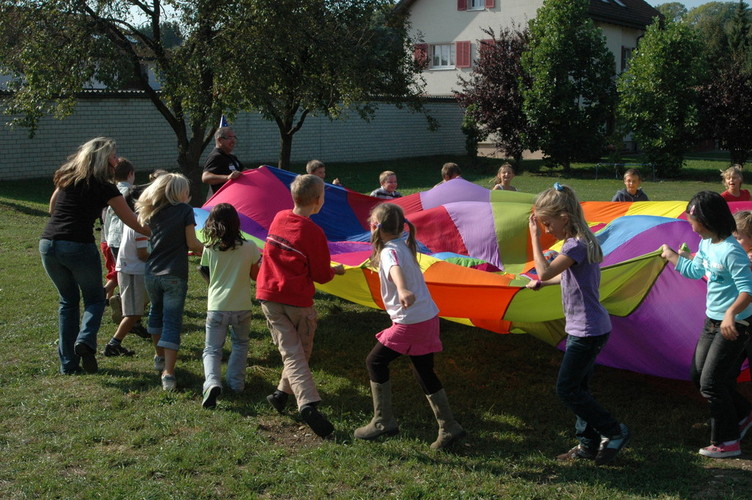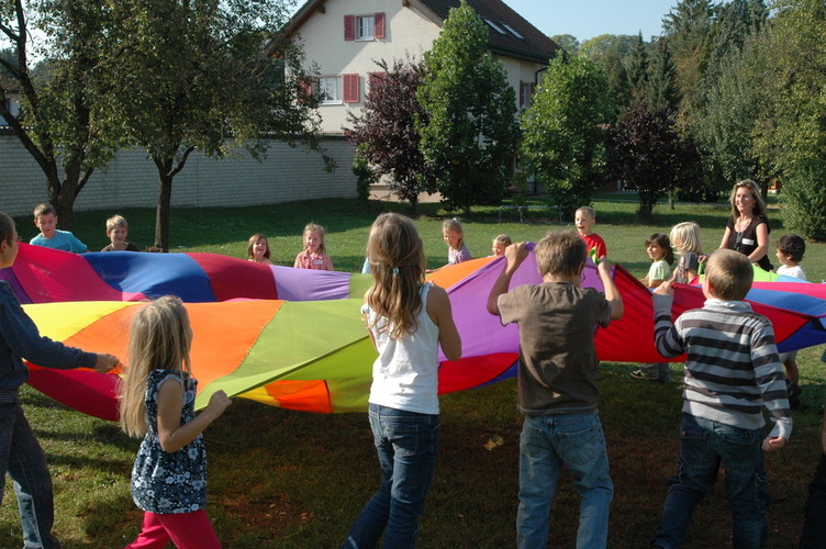 Das Schwungtuch hat seinen Ursprung in der Heilpädagogik und ist vielen Kindern aus dem Kindergarten bekannt.