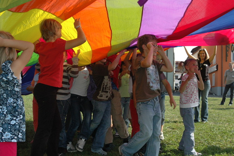 Zusätzlich zum Kindergeburtstag oder Veranstaltung können Sie unser beliebtes, vielfarbiges und attraktives Riesen-Schwungtuch mieten.