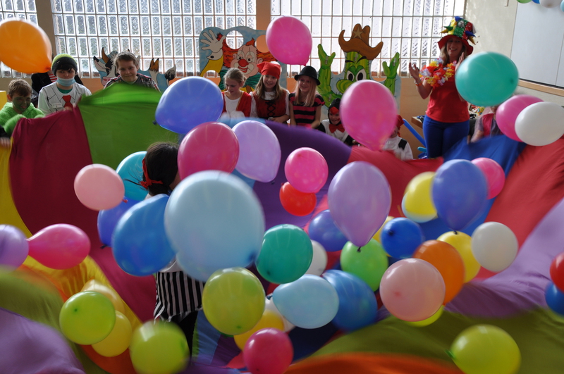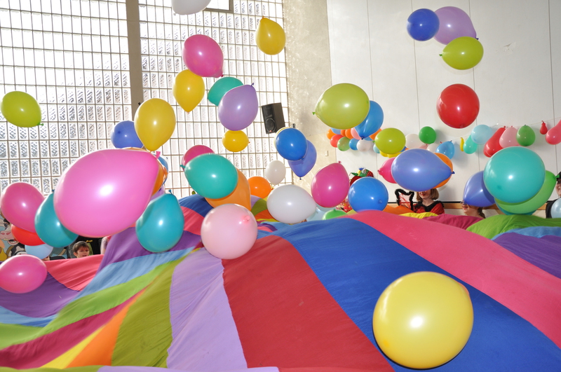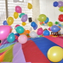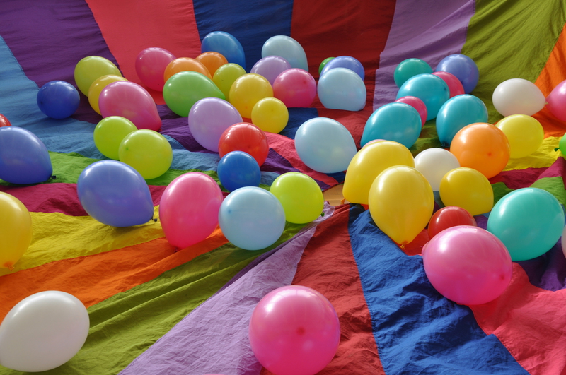 Tolle Idee: Zur Party das Schwungtuch mit Luftballons füllen!