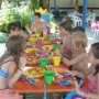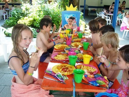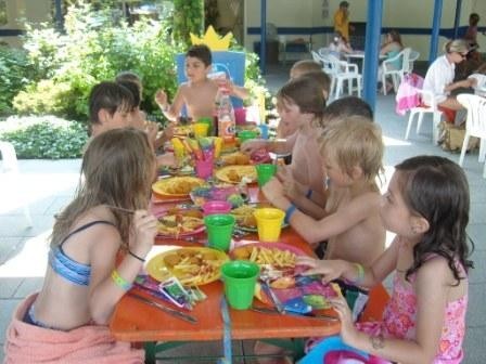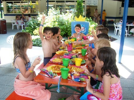 Nach dem Toben im kühlen Nass wird das Geburtstags-Menü für die Party-Gäste serviert.
