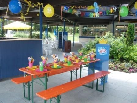 Zusätzlich haben Sie die Auswahl aus vier verschiedenen Geburtstagsmenüs aus dem Geburtstagsangebot der Freibadgastronomie. Bei der Anmeldung entscheiden Sie sich für eine Variation, diese gilt dann für die gesamte Gruppe. Bei Bestellung eines Geburtstags-Menüs wird ein bunt geschmückter Geburtstagstisch auf der Terrasse der Freibadgastronomie für Sie reserviert.